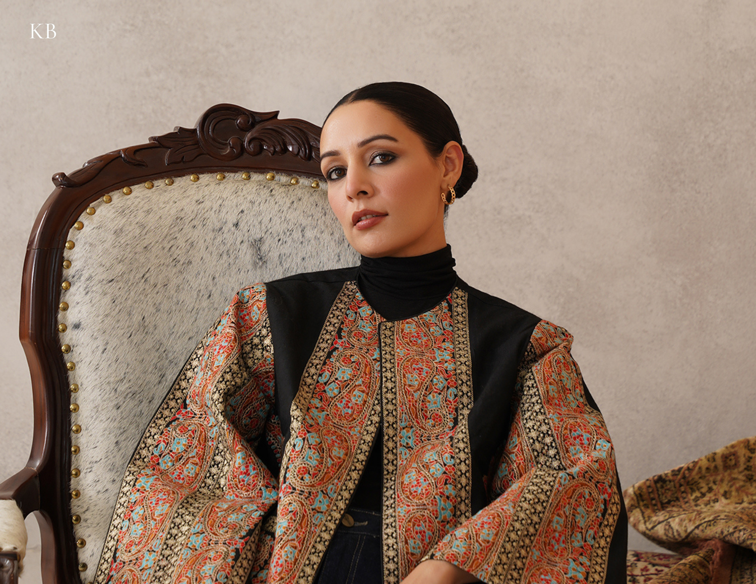 Nayaab Kashmiri Embroidered Woollen Jacket – Black