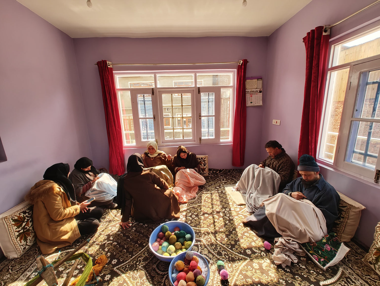 The artisans' hands grasp the aari needle day in and day out, ensuring the intricate detailing of every thread woven into the fabric.
