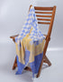 COLOUR: Dark royal blue and cream ikat checks framed by a soft pale yellow border.