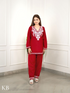 Blush Maroon Embroidered Coord Set For Women - Cotton Aari Work