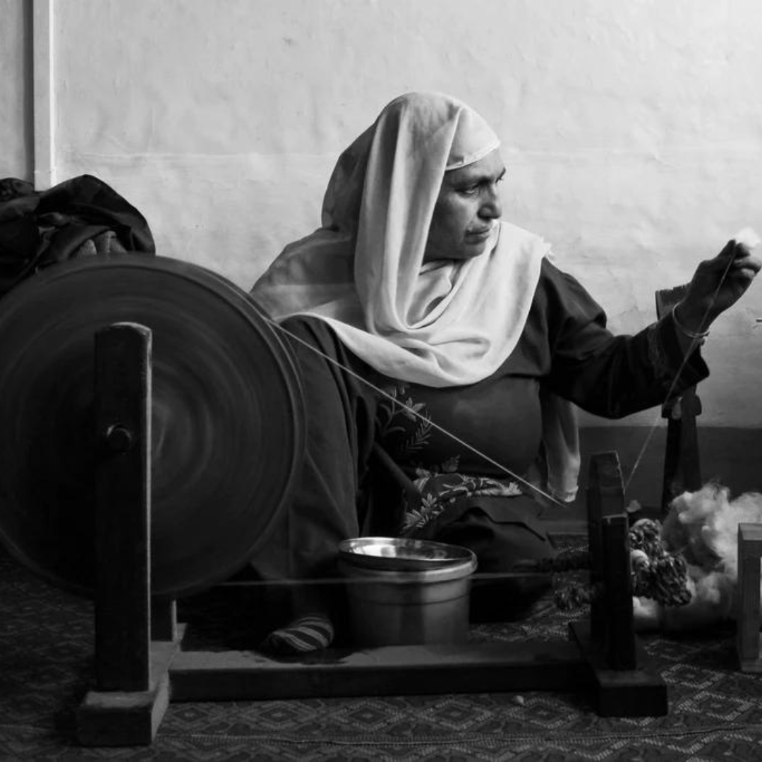 The wool, gathered into small balls, undergoes the spinning process. A traditional spinning wheel, locally referred to as 'Yender,' plays a significant role in making the exquisite and delicate Pashm threads.
