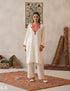 COLOUR - Off-white set adorned with contrasting Kashmiri Aari embroidery in shades of orange.