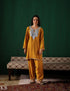 Kashmiri Silver Boti Tilla Embroidered Woollen Coordset – Mustard Yellow | Handcrafted Heritage