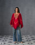 "A Kashmiri poncho in red and gold — radiant, festive, and made for your celebrations."