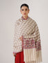 Kashmiri Handwoven Pashmina Striped Sozni Shawl Paldaar – White | Handwoven Heritage