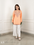 Peach Embroidered Short Kurti for Women - Cotton Aari Work